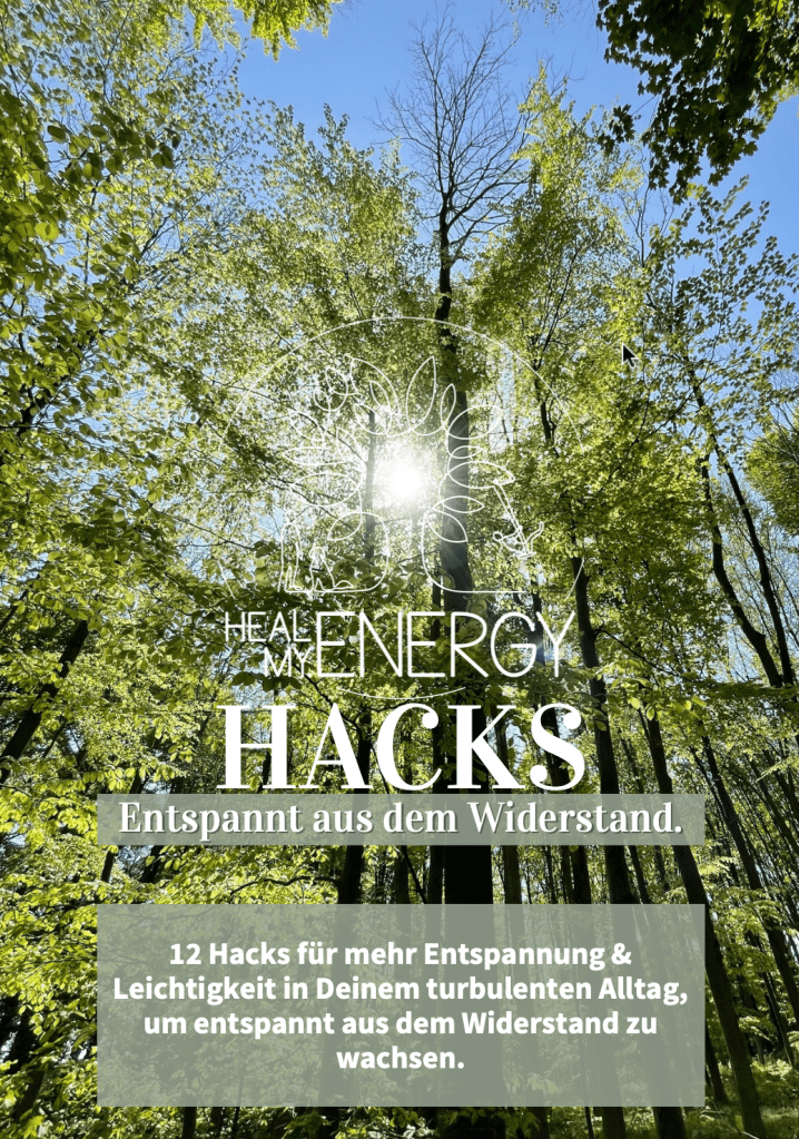 Falls Du sie noch nicht heruntergeladen hast, oder sie nochmal zur Erinnerung brauchst – meine zwölf HealMy.Energy Hacks können Dir helfen einige Routinen in Deinen Alltag einzubauen, um mehr Entspannung und Leichtigkeit in Deinem turbulenten Alltag einzuladen.