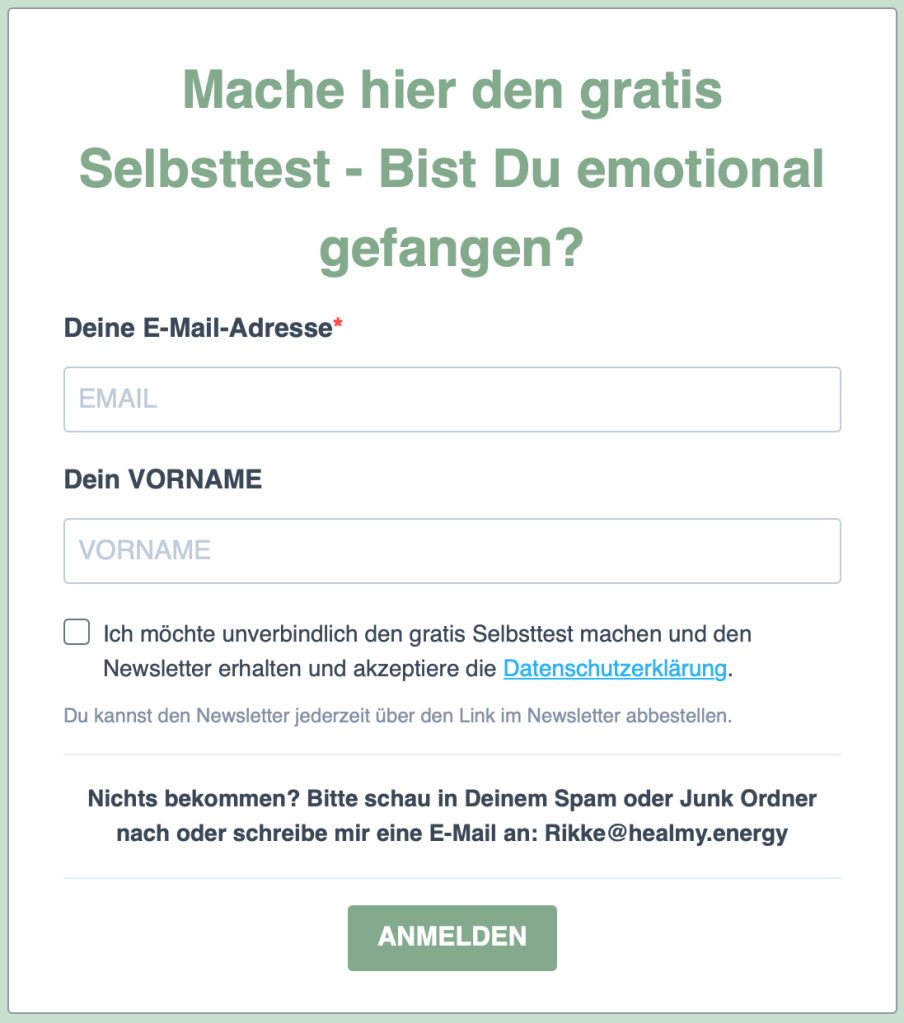 Mach hier den Selbsttest, um herauszufinden, ob Du emotional gefangen bist und ob Energieheilung Dir helfen kann. Und erfahre auch, wie mein Ergebnis aussieht.😅