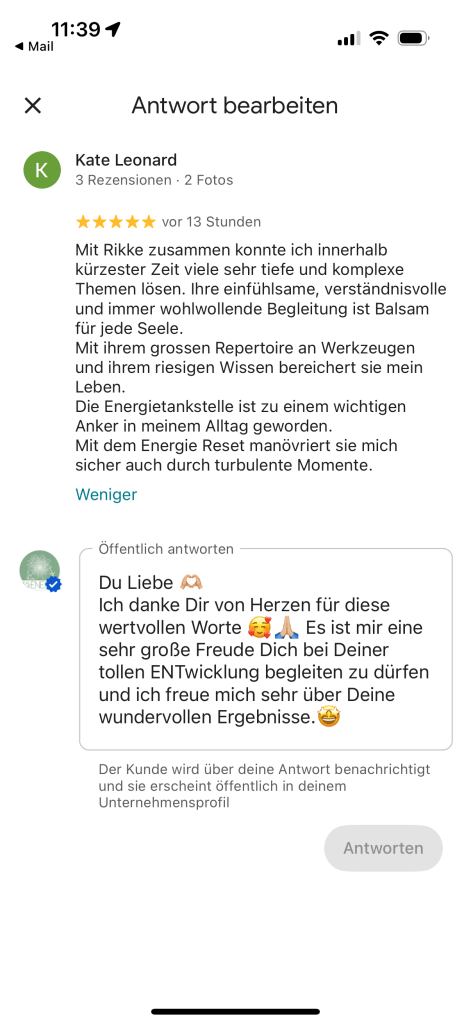Mirja, Google Bewertung nach einigen Sitzungen, 34 Jahre