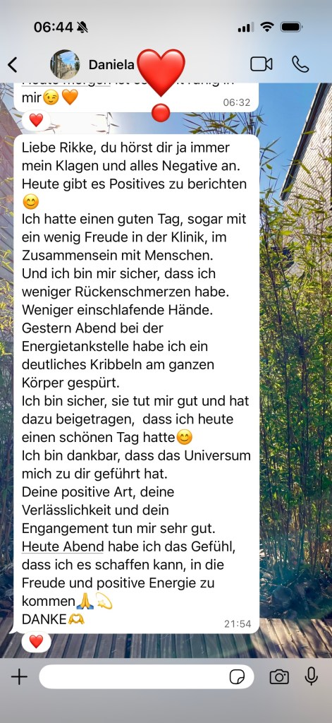 Daniela, Rückmeldung nach zwei Sitzungen und einmal Energietankstelle, Kick-Start Paketklientin, 52 Jahre
